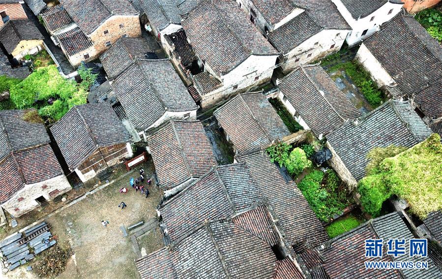 游客在廣西富川瑤族自治縣朝東鎮(zhèn)秀水村游玩(10月19日無人機(jī)拍攝)。這個(gè)位于瀟賀古道東南側(cè)的村落,至今仍保留著包括連片明清民居在內(nèi)的大量古建筑。