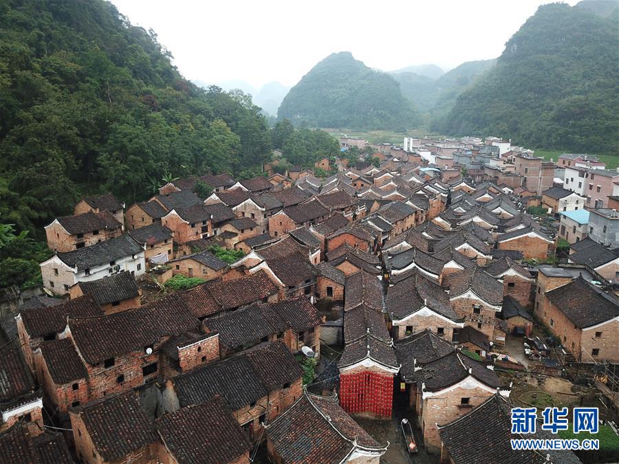 廣西富川瑤族自治縣朝東鎮(zhèn)岔山村連片古民居群(10月19日無人機(jī)拍攝)?!⌒氯A社記者 周華 攝