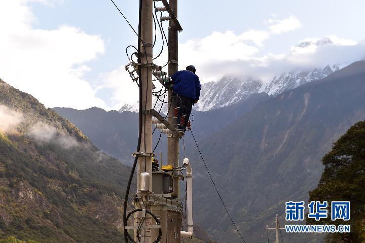 湖水淹沒(méi)地段,電力部門實(shí)施斷電措施,以防意外發(fā)生(10月18日攝)。 新華社記者 覺(jué)果攝