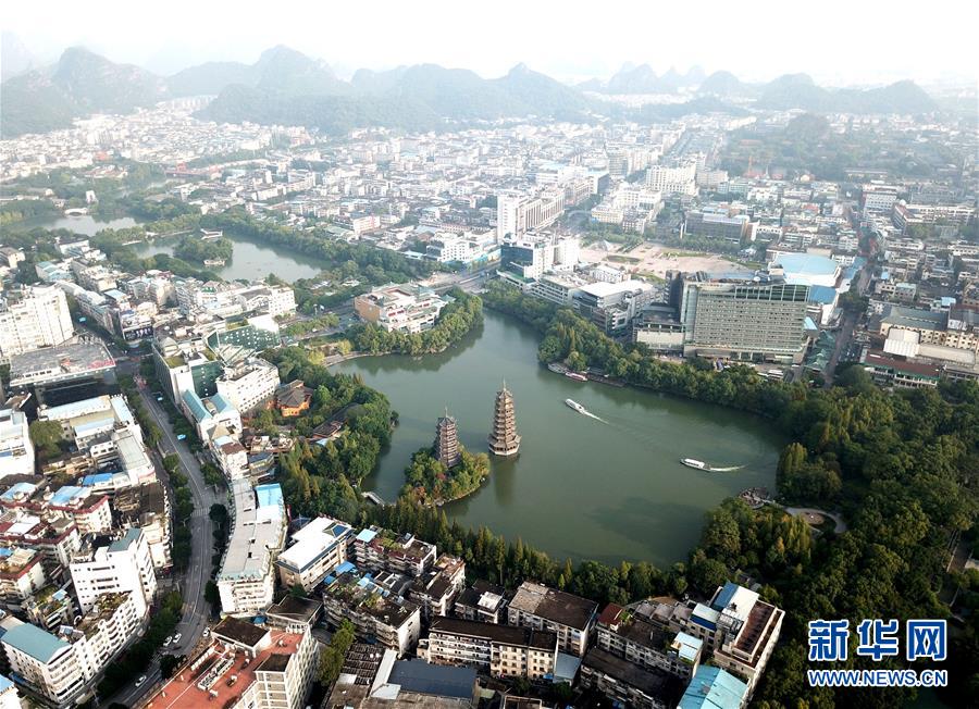 這是廣西桂林市的城市景觀(10月17日無人機拍攝)。 江作青羅帶,山如碧玉簪。1100多年前,唐朝詩人韓愈寫盡桂林山水之美。千百年來,桂林的青山綠水成為歷朝歷代文人騷客筆下的“人間仙境”。 保護好桂林山水,既是對祖國大好河山負責,更是對歷史負責。近年來,尤其是黨的十八大以來,桂林嚴守生態(tài)底線,以前所未有的力度截污治河,保護漓江最美山水,推動城鄉(xiāng)統(tǒng)籌協(xié)調發(fā)展,不斷擴大對外開放合作力度,努力在青山綠水里走出一條生態(tài)文明路。 新華社記者 周華 攝