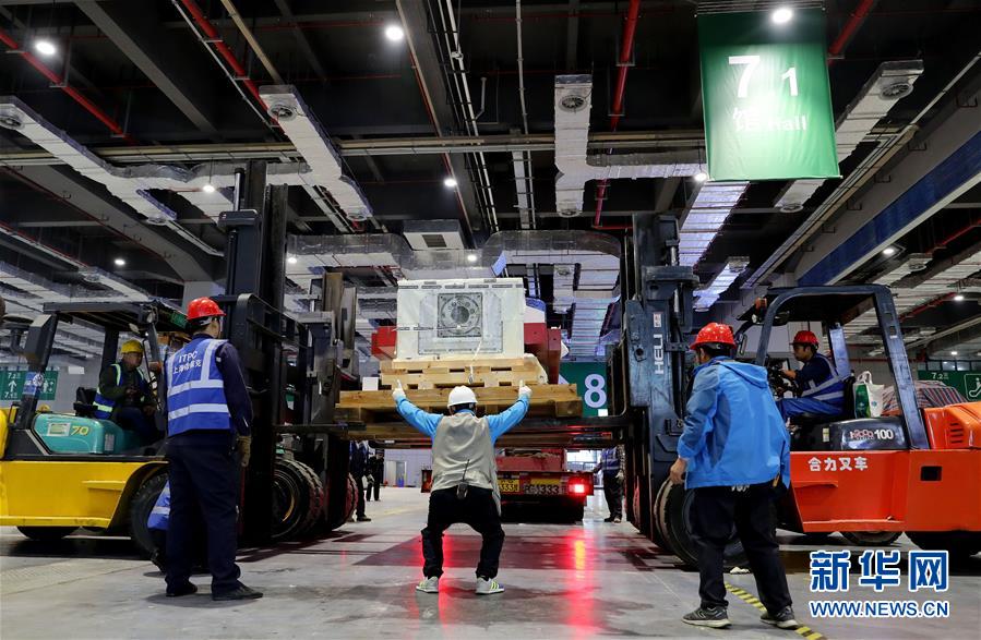 10月22日,現(xiàn)場(chǎng)工人動(dòng)用四臺(tái)叉車同時(shí)作業(yè),將“金牛座”龍門(mén)銑床核心部件溜板滑枕抬起后等待卡車就位裝車。 當(dāng)日,來(lái)自德國(guó)的首屆進(jìn)口博覽會(huì)最大展品——“金牛座”龍門(mén)銑床完成初步組裝,將運(yùn)往國(guó)家會(huì)展中心(上海)3號(hào)館進(jìn)行最后的安裝施工。這是德國(guó)瓦德里??票す狙邪l(fā)的機(jī)床設(shè)備,高約8米,占地面積約200平方米,將在智能及高端裝備區(qū)進(jìn)行展出。 新華社記者方喆攝