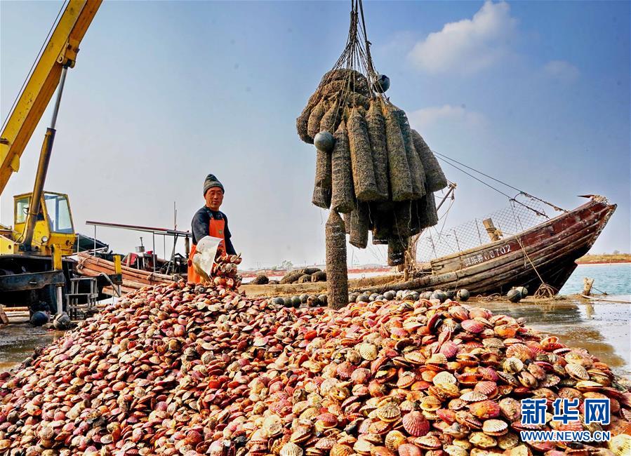 10月22日,樂亭縣姜各莊鎮(zhèn)南海濱村的養(yǎng)殖戶在漁船碼頭將收獲的扇貝卸下船。 近年來,河北省樂亭縣通過建設(shè)海洋牧場科學(xué)布局養(yǎng)殖區(qū)域、采用新技術(shù)新模式提升養(yǎng)殖質(zhì)量、成立專業(yè)合作社實行集約化經(jīng)營等措施,積極助推扇貝養(yǎng)殖加工產(chǎn)業(yè)發(fā)展,取得良好效益。據(jù)介紹,今年該縣扇貝養(yǎng)殖面積達32萬畝,預(yù)計鮮貝產(chǎn)量達5.5萬噸,產(chǎn)值3.8億元。 新華社記者楊世堯攝