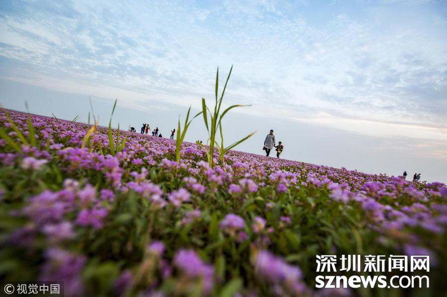 深圳新聞網(wǎng)訊 2018年10月23日,南昌,游人在江西鄱陽(yáng)湖都昌濕地蓼子花海內(nèi)游玩。連日來(lái),中國(guó)第一大淡水湖江西鄱陽(yáng)湖濕地大面積蓼子花開(kāi)放,秋景宜人,紫色的花海吸引大批游客前來(lái)賞景游玩。
