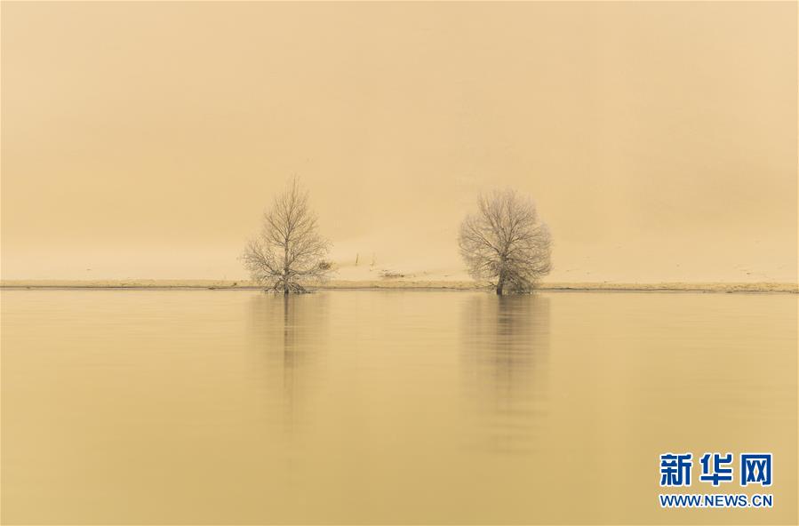 在位于新疆巴音郭楞蒙古自治州尉犁縣的一處名叫“羅布湖”的海子里,幾棵胡楊的倒影映在水中(10月17日攝)。 新華社記者 趙戈 攝
