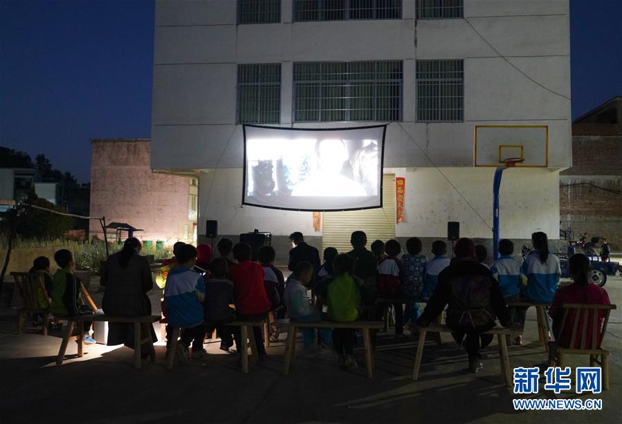 10月30日,寬田鄉(xiāng)山下村的百姓在觀看曾紀(jì)連為他們放映的電影。 新華社記者 胡晨歡攝
