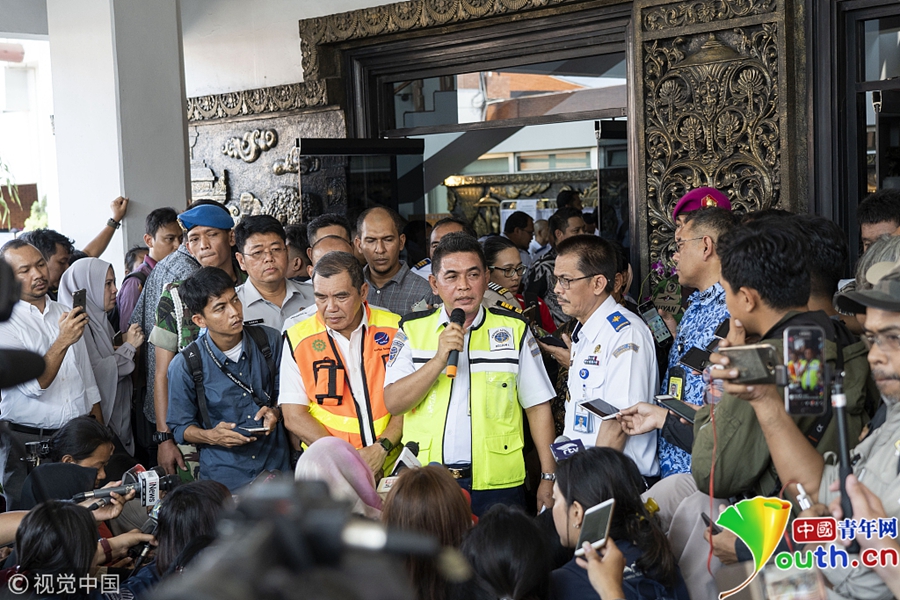 印尼哈達國際機場,機場管理局負責(zé)人Bagus Sunjoyo就獅航JT610墜機事件召開記者會。
