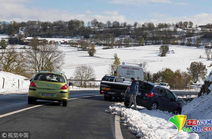 法國(guó)突降大雪致900多人被困公路