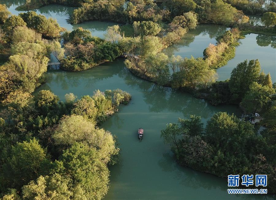這是10月29日無人機(jī)拍攝的西溪濕地。新華社記者翁忻旸攝