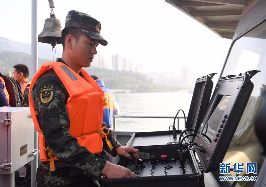 10月28日,武警重慶市總隊船艇支隊隊員在操作水下機器人系統(tǒng)進(jìn)行搜救。