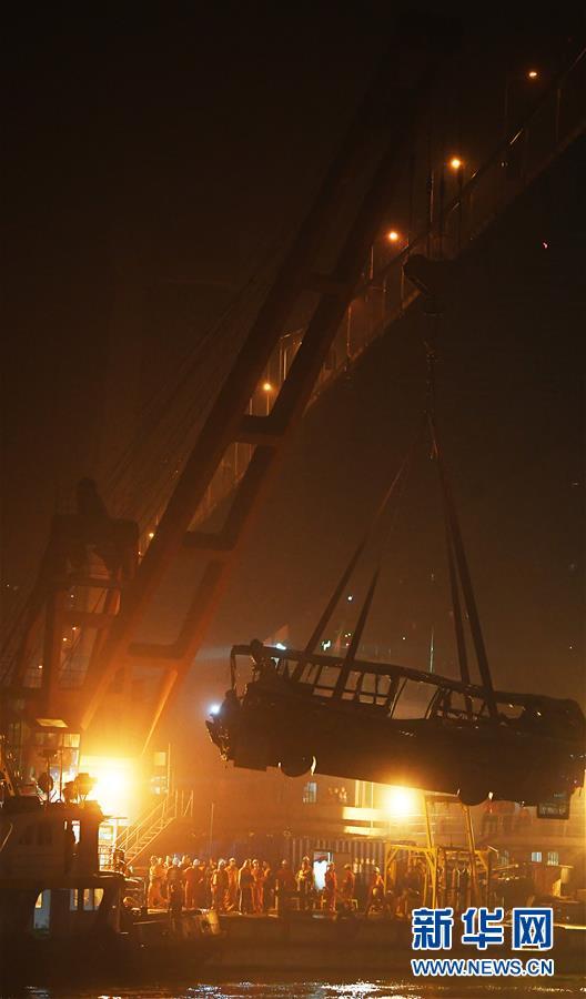 重慶萬(wàn)州墜江公交車(chē)打撈出水