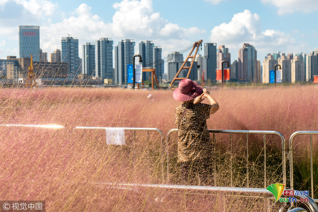 上海楊浦濱江粉黛亂子草成片盛開(kāi) 美不勝收