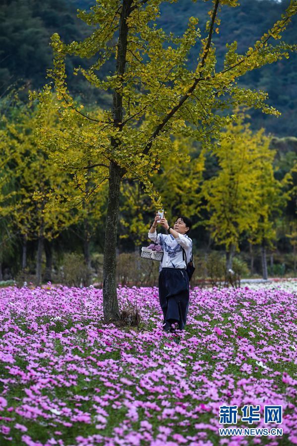 11月2日,游客在金黃的銀杏林與“五彩花海”間觀賞秋色。 新華社記者 徐昱 攝