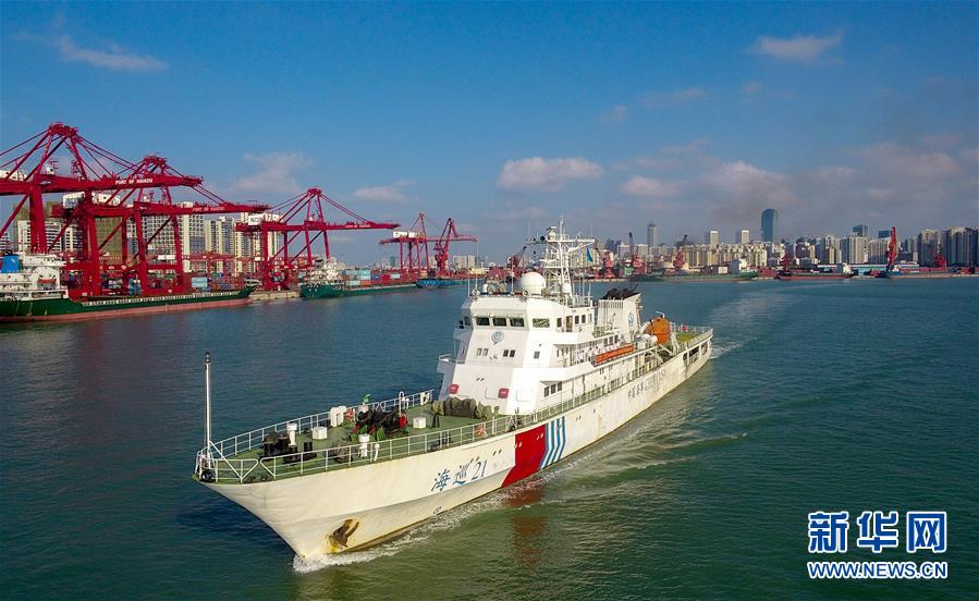 11月3日,“海巡21”輪駛出港口。當(dāng)日,隨著“海巡21”輪緩緩駛離??诤J卤O(jiān)管基地碼頭,由瓊桂粵海事部門共同開展的瓊州海峽、北部灣及環(huán)海南島水域跨轄區(qū)聯(lián)合巡航執(zhí)法活動(dòng)揭開序幕。新華社記者楊冠宇攝