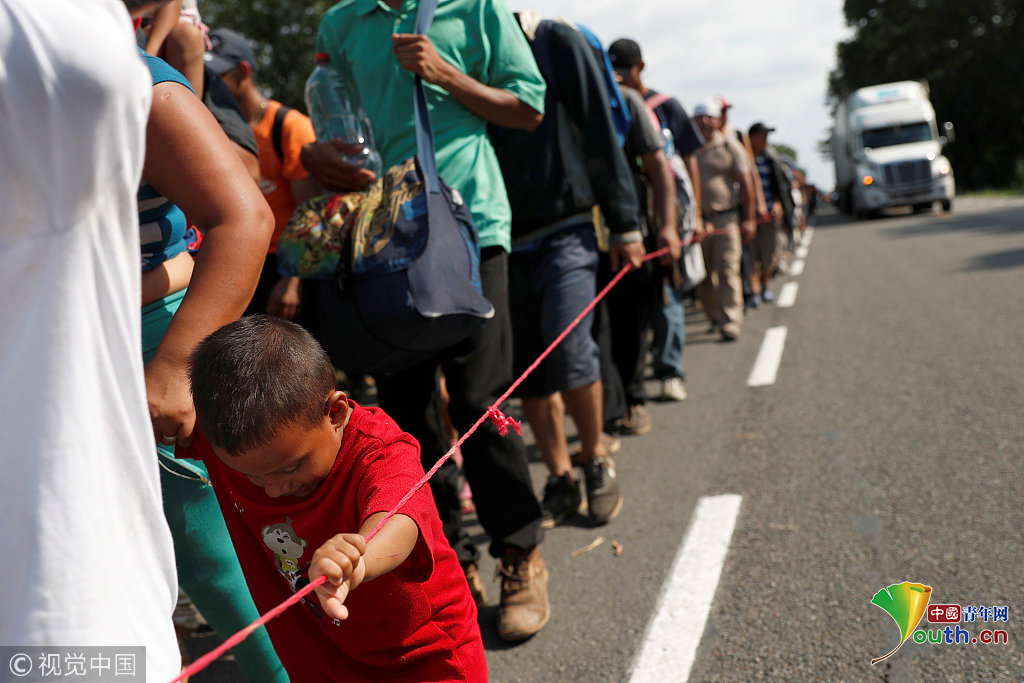 當?shù)貢r間2018年11月2日,墨西哥連接Ciudad Hidalgo與塔帕丘拉的公路上,中美洲移民繼續(xù)向美國挺進。圖片作者:CARLOS GARCIA RAWLINS