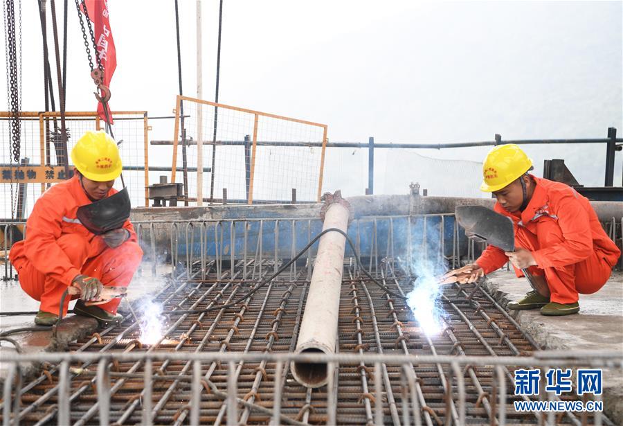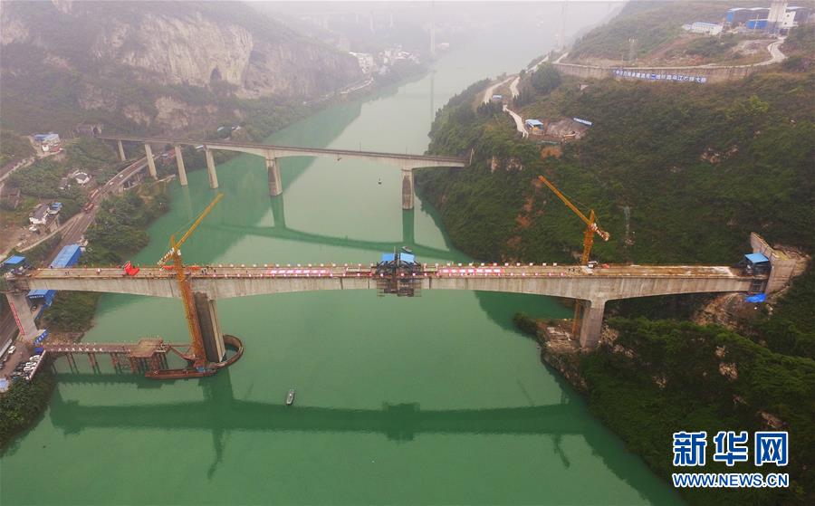 10月23日,在重慶涪陵,施工人員在渝懷鐵路涪秀二線重點(diǎn)工程——烏江右線大橋主跨合龍現(xiàn)場作業(yè)。 當(dāng)日,由中鐵四局承建的渝懷鐵路涪秀二線重點(diǎn)工程——烏江右線大橋主跨成功合龍,標(biāo)志著大橋主體工程全部順利結(jié)束。烏江右線大橋項目全程460.1米,主跨192米,跨越烏江和319國道。在兩年多的建設(shè)過程中,施工人員攻克了“不等高墩”“不對稱邊跨”“邊跨入隧”等多個技術(shù)難題。 新華社記者王全超攝