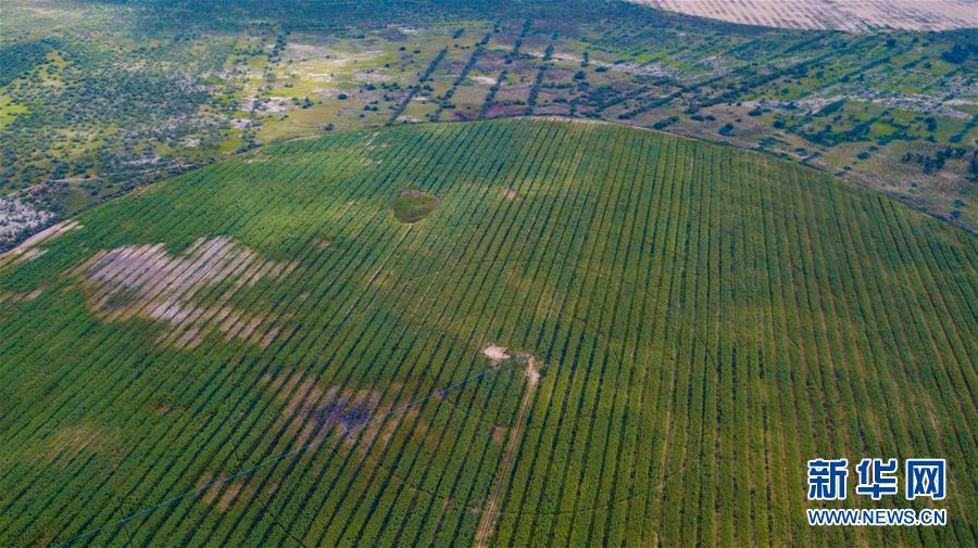 內(nèi)蒙古達(dá)拉特旗白土梁林場(chǎng)的沙棘林(8月1日無(wú)人機(jī)拍攝)。 新華社記者張善臣攝