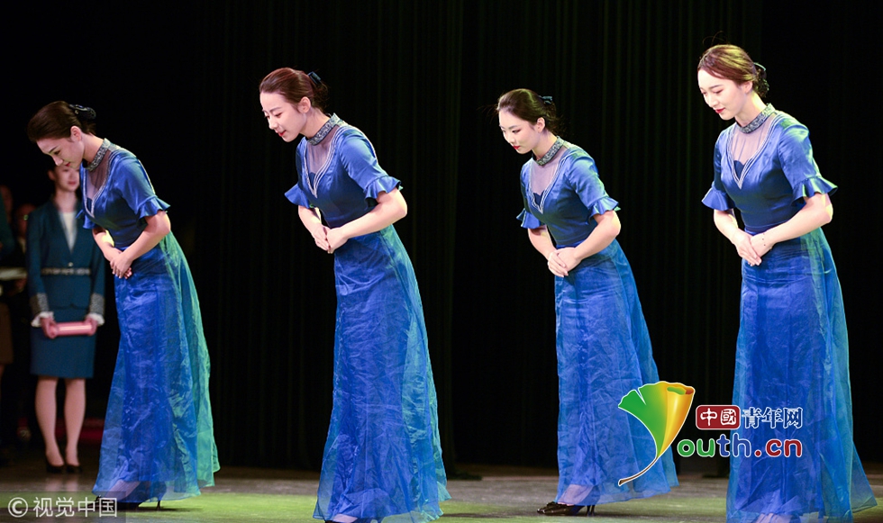 2014年11月17日,世界互聯(lián)網(wǎng)大會直播演練在浙江烏鎮(zhèn)舉行。來自浙江傳媒學院的大學生們,身著一襲青花瓷紋旗袍亮相,顯得分外嫵媚,引人注目。