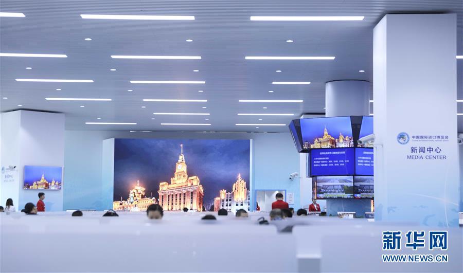 這是11月4日拍攝的首屆中國國際進(jìn)口博覽會(huì)新聞中心媒體公共工作區(qū)一角。 新華社記者蘭紅光攝