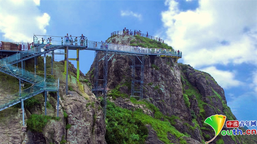 經(jīng)過(guò)一年的建設(shè),位于素有“嶺南第一險(xiǎn)峰”與“南粵小華山”之稱(chēng)的廣東清遠(yuǎn)連山金子山,有一條玻璃天梯建成。下個(gè)月10日,玻璃天梯將正式對(duì)游客開(kāi)放。