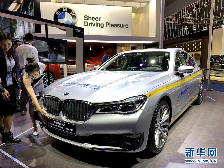 這是11月7日在汽車展區(qū)拍攝的配備L4級自動(dòng)駕駛技術(shù)的寶馬7系測試車。新華社記者 牛曉雷 攝
