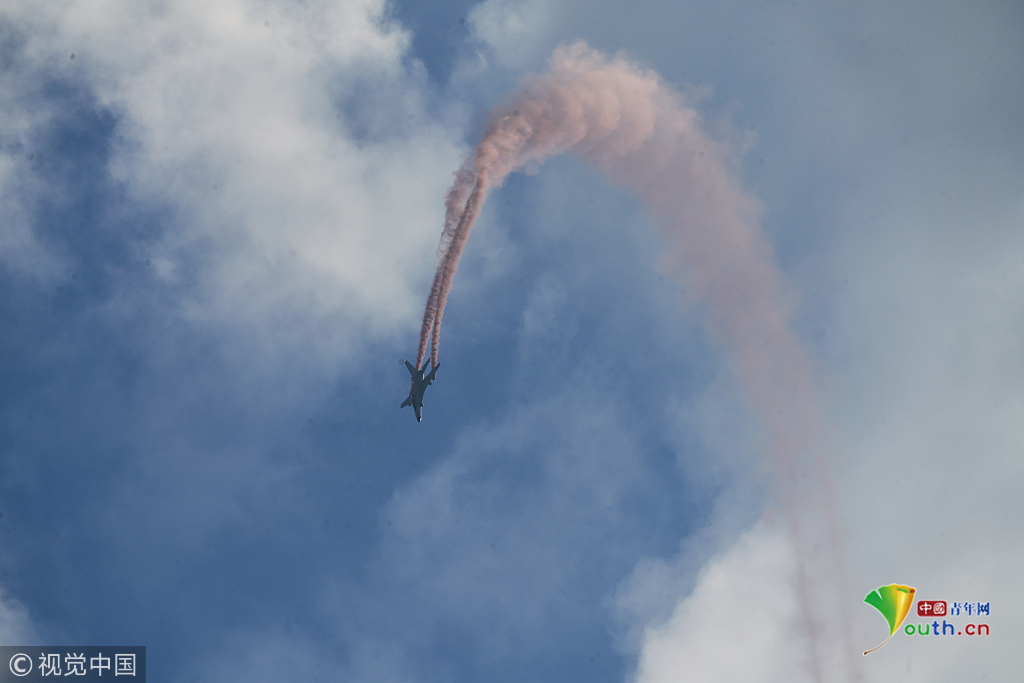 2018年11月7日,廣東珠海,第十二屆珠海航展第二天,航空工業(yè)FTC-2000G戰(zhàn)斗機(jī)進(jìn)行飛行表演。梁瑩菲/視覺中國