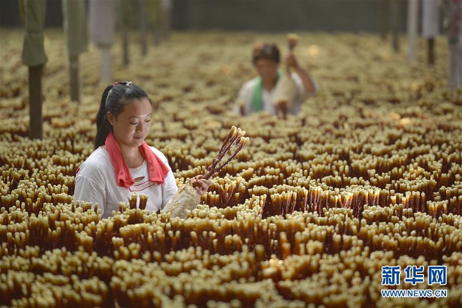 8月22日,河北省沙河市蟬房鄉(xiāng)水磨頭村農(nóng)民在管理種植的靈芝。 近年來,河北省沙河市蟬房鄉(xiāng)水磨頭村采取“合作社+基地+農(nóng)戶”的經(jīng)營模式,大力發(fā)展特色靈芝種植,開辟出農(nóng)民創(chuàng)收新路徑。目前,水磨頭村已種植各類靈芝8萬多株,產(chǎn)品銷往北京、天津、山東等地,帶動100余名農(nóng)民人均年增收超5000元。 新華社記者 牟宇 攝