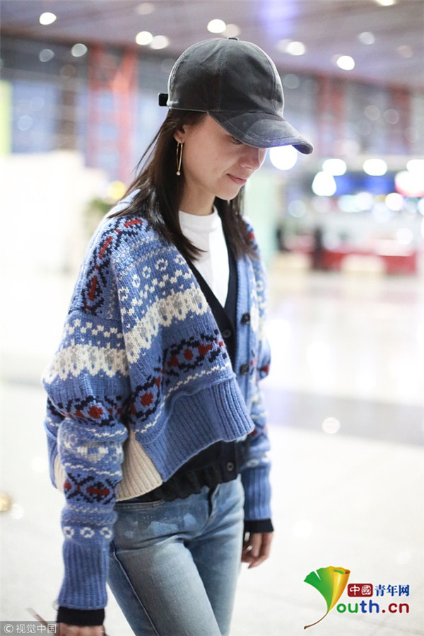 董潔素面朝天現(xiàn)身機(jī)場(chǎng)