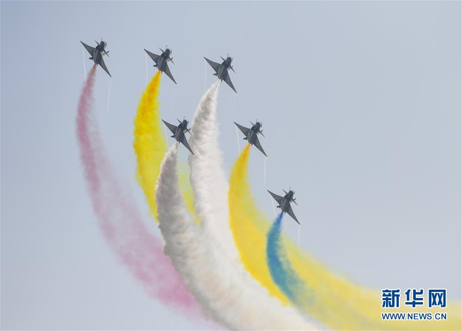 11月6日,中國空軍八一飛行表演隊(duì)在航展現(xiàn)場(chǎng)進(jìn)行飛行表演。當(dāng)日,第十二屆中國國際航空航天博覽會(huì)在珠海開幕。新華社記者鄧華攝