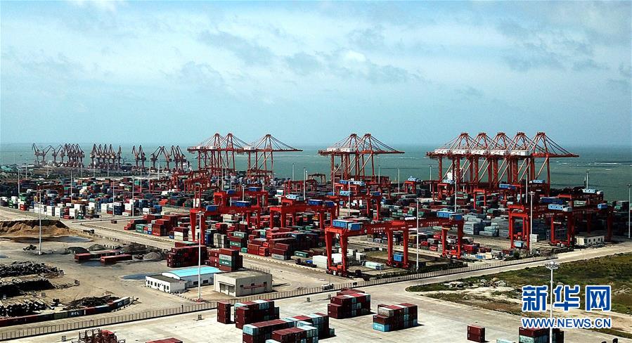這是廣西欽州保稅港區(qū)碼頭(7月1日無人機(jī)拍攝)。新華社記者 張愛林 攝