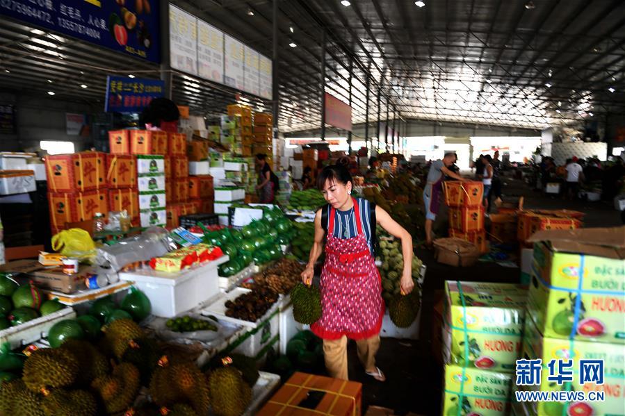 這是廣西憑祥市物流園內(nèi)的水果交易市場(chǎng)一角(9月4日攝)。新華社記者 張愛(ài)林 攝