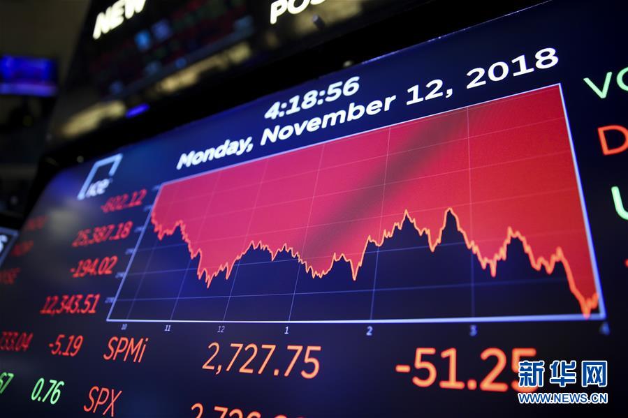 11月12日,美國紐約證券交易所的電子屏顯示當(dāng)日交易數(shù)據(jù)。 新華社記者 王迎 攝