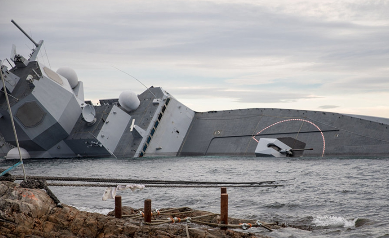 挪威:被撞翻的海軍護(hù)衛(wèi)艦打撈出水