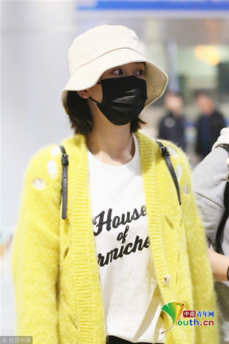 日前,楊紫現(xiàn)身長(zhǎng)沙黃花機(jī)場(chǎng),她頭戴漁夫帽的她口罩遮面,身著鮮黃針織衫相當(dāng)搶眼,一路獲粉絲跟拍。