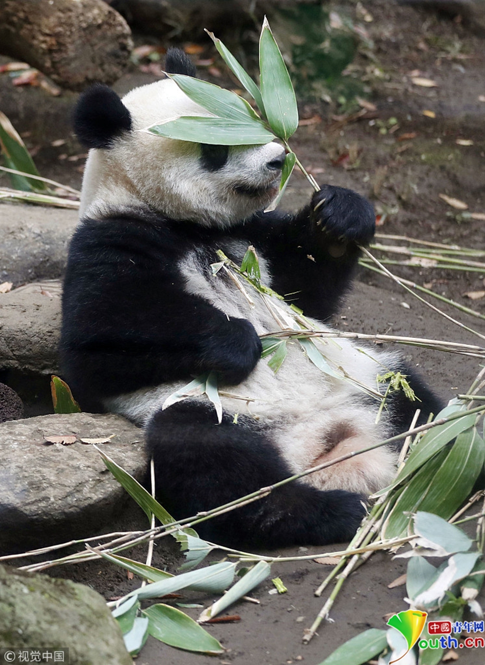 9月7日,大熊貓七仔在陜西省珍稀野生動物搶救飼養(yǎng)研究中心內(nèi)吃竹筍。