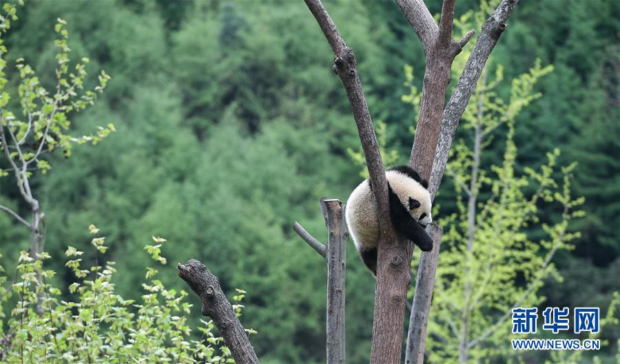這是在中國大熊貓保護(hù)研究中心臥龍神樹坪基地拍攝的大熊貓(2018年4月25日攝)。 新華社記者 薛玉斌 攝