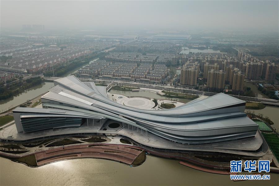 11月14日無人機拍攝的湖州市吳興區(qū)八里店農民社區(qū)及新落成的吳興區(qū)文體中心(前方建筑)。 浙江省湖州市吳興區(qū)八里店農民社區(qū)目前安置居民近4萬人,整個區(qū)域內公共設施配套齊全,路網交通便捷順暢,綠化生態(tài)自然和諧,社區(qū)活動豐富多彩。 新華社記者 黃宗治 攝