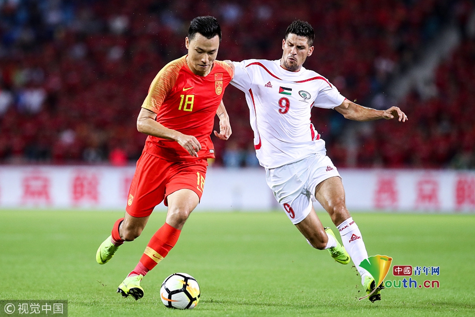 2018年11月20日,???,2018國際足球友誼賽,中國男足Vs巴勒斯坦。郜林拼搶 圖片作者:null