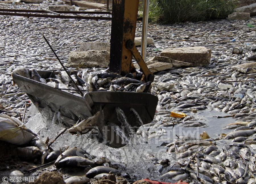 養(yǎng)魚戶們陷入數萬條魚慘死的困境中,一些人猜測它們可能是被毒死的,為了避免造成更大的損失,瘋狂地把死魚從河中撈出來。漁民法拉吉說:“有人認為這可能是一種疫病,也有人說可能是化學有毒物質導致的,我們都在等著政府的解決方案,還有人擔心這些水有問題會對附近居民造成傷害?!?/p>