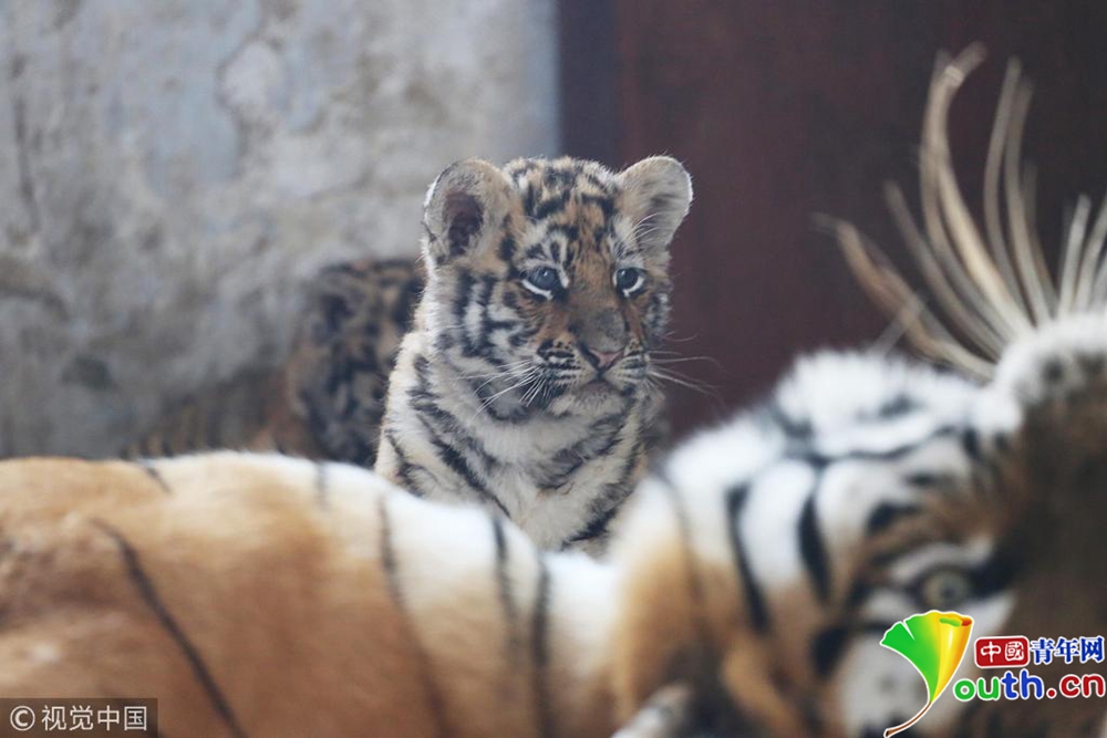 11月23日,出生一個多月的小東北虎和“虎媽”在一起。位于哈爾濱的黑龍江東北虎林園近日發(fā)布消息,該園2018年繁育計劃已經完成,全年新增東北虎寶寶98只。