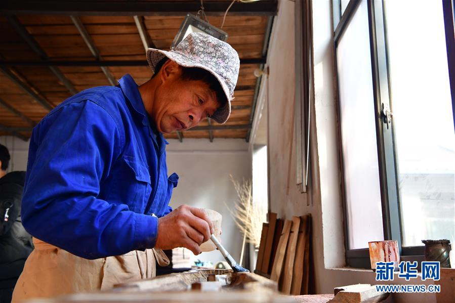 在河南蘭考縣固陽(yáng)鎮(zhèn)徐場(chǎng)村墨武琴坊,一位工人在生產(chǎn)車間里制作古琴(11月9日攝)。新華社記者馮大鵬攝
