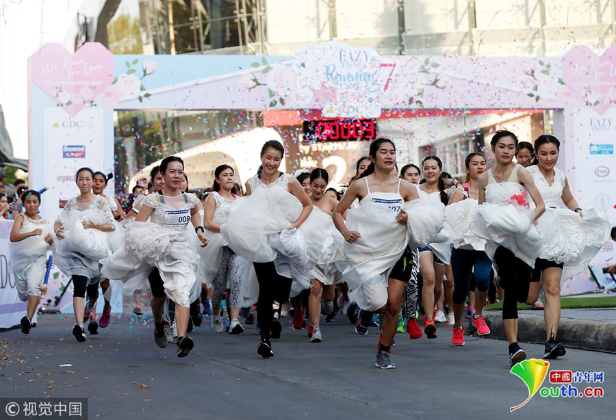 泰國(guó)新娘賽跑爭(zhēng)免費(fèi)婚禮 新娘街頭提裙狂奔