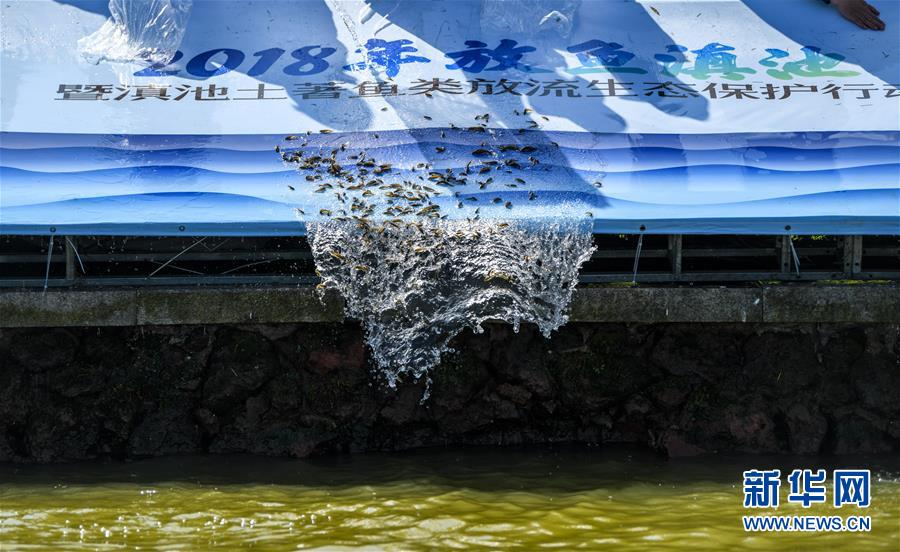 當日,“2018放魚滇池暨滇池土著魚類放流生態(tài)保護行動”在昆明滇池湖畔舉行,包括20萬尾滇池金線鲃、云南光唇魚在內(nèi)的滇池土著魚類以及5萬余尾鰱、鳙魚在滇池放流。 據(jù)統(tǒng)計,滇池最多的時候生活著24種土著魚,目前除了銀白魚自然存在外,2010年實現(xiàn)了滇池金線鲃的人工增殖放流,2017年又讓云南光唇魚實現(xiàn)了回歸。 新華社記者江文耀攝