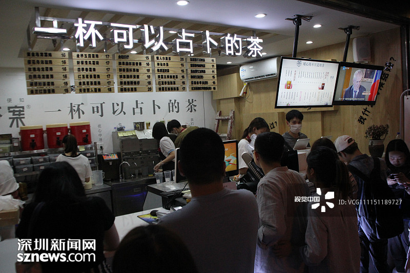 2018年4月21日,重慶,萬(wàn)達(dá)廣場(chǎng)附近有一家新開(kāi)業(yè)的網(wǎng)紅答案茶的冷飲店,這家答案茶冷飲店人氣異常火爆,門(mén)前已排起了兩條“長(zhǎng)龍”。