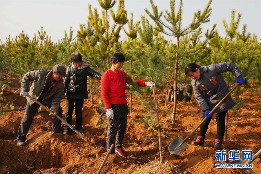 11月25日,遷安市蔡園鎮(zhèn)劉莊子村的村民在村北鐵礦廢料場(chǎng)栽植松樹(shù)。 新華社記者 楊世堯攝