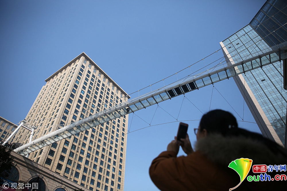2018年11月28日,石家莊市區(qū)內(nèi)的一座玻璃吊橋在網(wǎng)絡(luò)上走紅,游客們置身于透明的玻璃吊橋上,望著地面川流不息的車輛,伴隨玻璃破裂的特效聲,不禁膽戰(zhàn)心驚。這座玻璃吊橋位于石家莊南二環(huán)附近,橋體橫跨塔通大街,長100米,高30米,。橋面由52塊特質(zhì)玻璃構(gòu)成,其中4塊為特效玻璃,游客腳踩上去就會(huì)發(fā)出玻璃破裂的聲音。