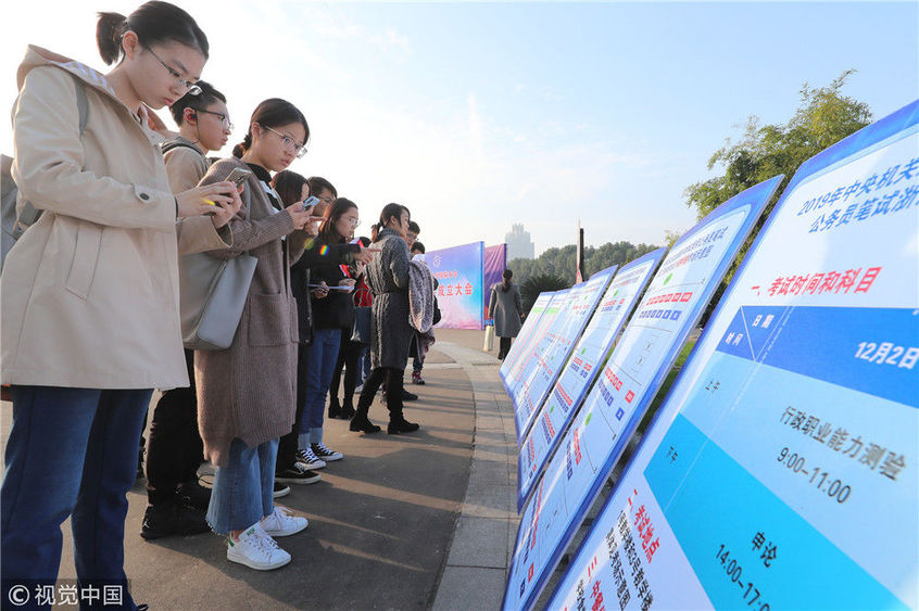 2018年12月2日,湖北武漢一公務(wù)員考點(diǎn),密密麻麻的考生進(jìn)向考場(chǎng)。當(dāng)日,2019年度中央機(jī)關(guān)及其直屬機(jī)構(gòu)公務(wù)員招考筆試開考。楚林/視覺中國(guó)