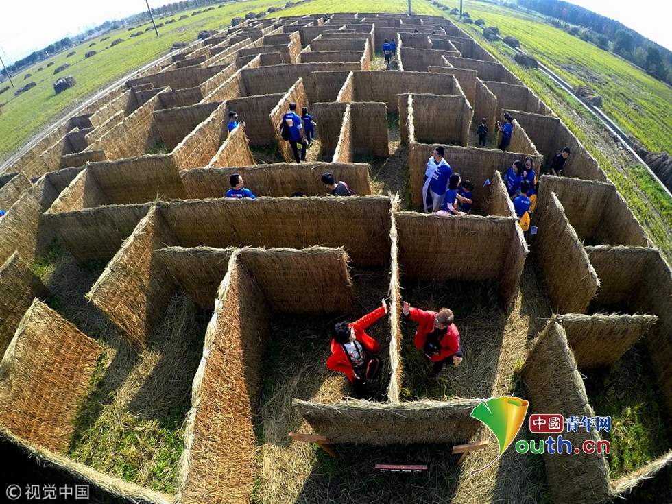 其中還有一個占地一畝多的稻田迷宮,游人穿梭在秸稈做成的迷宮里,別有一番獨特質(zhì)樸的樂趣。圖片來源視覺中國