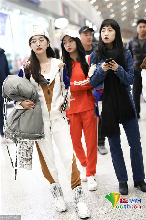 2018年12月3日,北京,“火箭少女101”全體成員現(xiàn)身機場前往國外錄制團總綜。其中孟美岐戴著墨鏡,一身全黑運動裝扮,大步流星氣場超強,楊蕓晴、yamy、楊超越等成員緊隨其后,大家還一起在機場玩起自拍,好不歡樂。