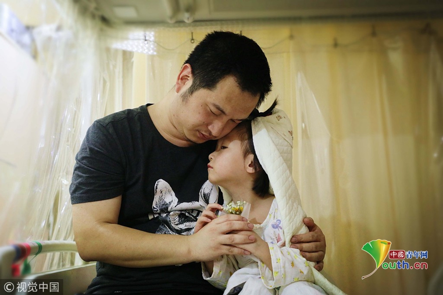 中國青年網(wǎng)北京12月3日電2018年11月17日,在北京博仁醫(yī)院病房內(nèi),4歲的小婭馨披著一條象征著婚紗的毯子坐在床上,爸爸袁東方雙手捧著一束小小的假鮮花單膝跪地向女兒“求婚”,隨后,父女倆緊緊地?fù)肀г谝黄?,顯得既幸福又傷感。旁邊的小婭馨媽媽抹著眼淚抽泣著說“我女兒未必明白結(jié)婚寓意著什么,但她真的好想健康地活著!她是那么天真無邪,又那么懂事可愛,我們真舍不得丟下她不管,祈求社會(huì)上的好心人幫幫我們,救救我心愛的女兒吧!”。