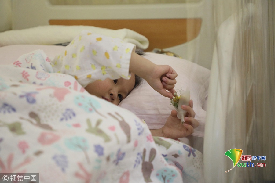 有人說,每個(gè)大病患兒都是折翼的天使。經(jīng)過兩年多的治療后,小婭馨變得越來越堅(jiān)強(qiáng)懂事了,對(duì)自己的病情也有了基本清晰的認(rèn)知。11月16日,小婭馨接受化療時(shí)靜脈上被插上了長長的管子,疼的嚎啕大哭,爸爸袁東方摟著她痛哭流涕:“女兒不怕!打完針病就好了,你就能像正常人一樣上學(xué)、戀愛、結(jié)婚了!”。治療結(jié)束后,小婭馨天真無邪地說“爸爸,長大了才可以結(jié)婚,那需要好久,我害怕等不到那一天,要不現(xiàn)在咱們倆結(jié)一次婚吧!”。